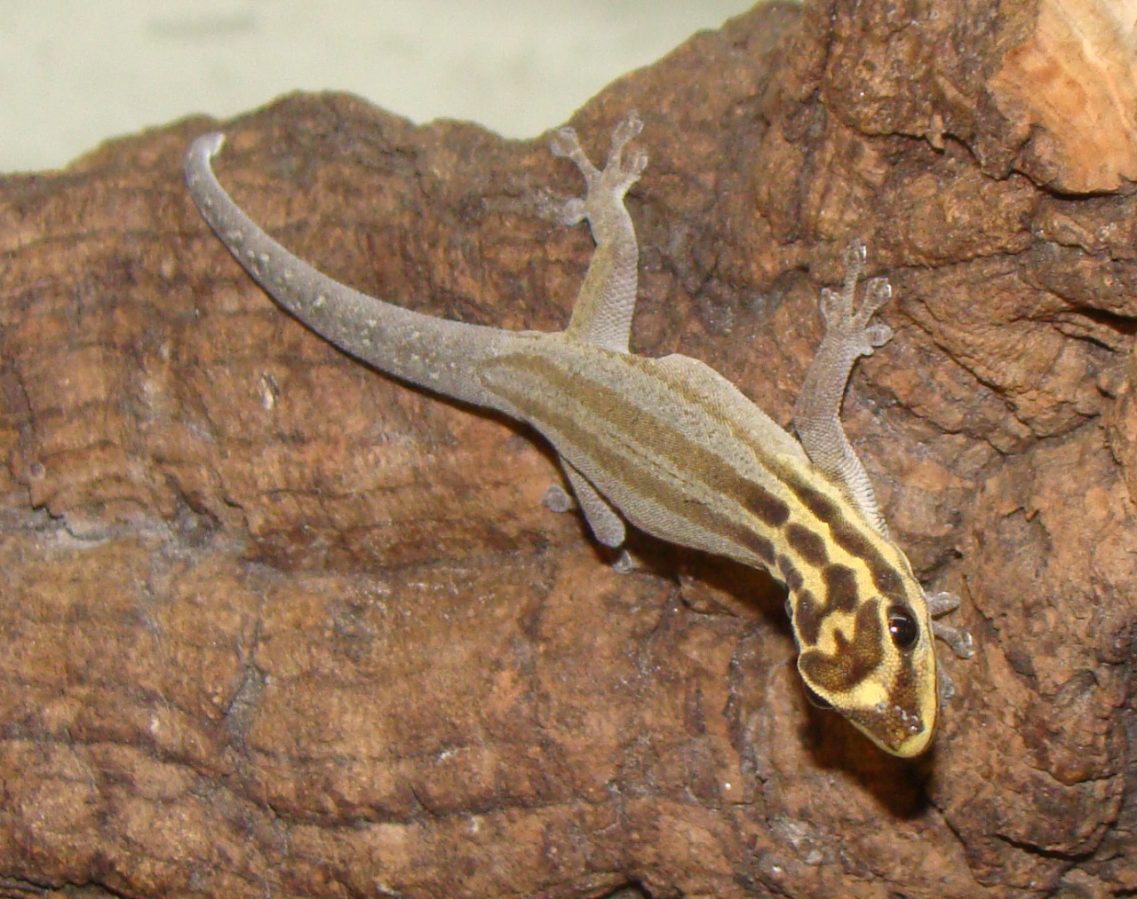 CHOV: Terárium je třeba orientované na výšku, protože se jedná o stromové ještěry. Pro pár je ideální velikost 50x40x60cm (délka, šířka, výška). Jako substrát je ideální rašelina smíchaná s pískem v poměru 1:1. Jako u většiny ještěrů je ideální 3D stěna a dostatek větví, neuškodí i živá kytka, u které nehrozí poničení od těchto malých gekonů. Teplota v terárku by měla být 27-30°C s výhřevným místem k 35°C a nočním poklesem. Miska na vodu není při dostatečném rosení potřeba. Vlhkost by měla být okolo 70%. Jelikož se jedná o denní gekony, neměla by chybět UVB žárovka.